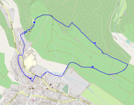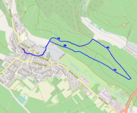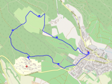 Am Walkenbach-Blick genießen wir die Fernsicht über Kiedrich hinweg. Nach ca. 500m verlassen wir den Weg und biegen scharf rechts ab nach unten. Im weiteren Verlauf stoßen wir auf den Weg 3 und folgen diesem in Richtung Kiedrich. Am Ende der Talstraße biegen wir dann ab in Richtung Oberstraße um zum Ausgangspunkt zurückzukehren.