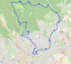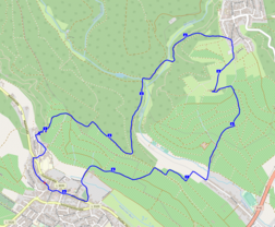 Die Tour führt einmal rund um den Wiesbadenenr Norden. Ausgangspunkt ist ein Parkplatz an der Sonnenberger Straße. Von hier aus geht es erst einmal "hinunter" in den Kurpark. Dieser wird dann komplett in Richtung Norden (Sonnenberg) durchlaufen. In Sonnenberg geht es dann vorbei an der Burg weiter in Richtung Goldsteintal. Dort geht es entlang der wenig befahrenen Straße weiter bis zur Gaststätte "Das Goldstein". Dort dann nach links abbiegen - in den Wald hinein. In Höhe des Wanderparkplatzes geht es dann hinein in den Köglerweg. Auf diesem geht es dann im Bogen um den Rabengrund herum. Hier ist auch der höchste Punkt der Route erreicht. Weiter geht es nun bergab, vorbei an einer Jagdhütte in Richtung Leichtweißhöhle. Diese ist von April bis Oktober jeweils mittwochs und sonntags zu begehen. Ich war leider zum falchen Zietpunkt dort... Von der Höhle aus führen dann verschiedene Wege zum nächsten Ziel - dem Neroberg. Von hier aus und insbesondere auch vom benachbarten Opelbad aus bietet sich ein herrlcher Blick über Wiesbaden hinweg. Über einen schmalen Steig geht es nun weiter zur Russisch-Orthodoxen Kirche, deren goldene Dächer schon von weitem durch den Wald strahlen. Ein Blick ins Innere der kleinen Kirche lohnt sich. Von hier aus geht es weiter hinab ins Nerotal - zur Talstation der Nerobergbahn. Dort wird dann das Nerotal durchquert, welches entlang des Schwarzbaches am Thalhaus vorbei zur Taunusstraße führt. Die Straße geht es dann entlang bis zum Kranzplatz/Kochbrunnenplatz. Der weitere Weg führt dann durch die Fußgängerzone in Richtung Marktplatz. Hier warten dann Landtag, Rathaus und Marktkirche. Vorbei an der Touristinfo geht es dann "An den Quellen" entlang weiter zur Burgstraße. Von da aus sieht man schon den nächsten Punkt - das Kurhaus. Rechts am Kurhaus vorbei geht es dann wieder in den Kurpark hinein - zurück zum Ausgangspunkt.