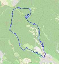 Startpunkt zu dieser Tour ist der Parkplatz Bitter-Eiche oberhalb von Hausen. Hier geht es zunächst den asphaltierten Weg durch den schattigen Wald Richtung Hofgut Mappen. Nach etwas mehr als 2 km geht es dann halb links hinein in Richtung Mapper Schanze. Auf dem Weg dahin geht es vorbei an einer kleinen Kapelle am Hofgut ehe nach insgesamt ca. 4 km die Ruine der Mapper Schanze erreicht ist. Weiter geht es den Weg entlang immer bergauf, wo es an der nächsten großen Kreuzung nach links hoch geht in Richtung Kasimirkreuz. Dort biegen wir nach rechts auf den Rheinhöhenweg ab. Ca. 500 m weiter geht es dann links hinauf zur "kalten Herberge", dem höchsten Punkt im Rheingau. Von hier ist auch gut der nächste Punkt der Wanderung zu sehen - die Hallgarter Zange. Dorthin gelangt man zunächst bergab bis zum Parkplatz Kreis-Tanne um von da aus dann den Weg zur Zange hinauf zu wählen. Aktuell (Sommer 2021) ist das Gelände der Hallgarter Zange wieder geschlossen. Im Jahr 2022 soll die Gastronomie und auch der Hochseilgarten wieder eröffnen. Links vorbei am Gelände der Zange geht es dann über unscheinbare Waldpfade hinab zum Hauptweg. Diesem wird so gut es geht weiter gefolgt. Hier sind, aufgrund von Sturmschäden aus den vergangenen Jahren, nicht mehr alle in einschlägigen Karten markierten Wege und Pfade begehbar. So wählte ich auch einen halbwegs gangbaren Pfad bergab mitten durch den Bruchwald hinunter zum nächsten festen Weg. Da hier derzeit die Forstarbeiten andauern, kann es durchaus sein, dass der normale Weg irgendwann wieder passierbar ist... Vom Hauptweg geht es dann an der nächsten Kurve wieder links bergab, einen Trampelpfad hinunter zum nächsten Weg. Hier ist dann der tiefste Punkt der Tour erreicht. Dem Weg folgen wir dann nach Links ca. 500m leicht bergauf. Am Ende der geraden geht es dann rechts hinauf um nach weitern 1500m Anstieg den nächsten Kreuzungspunkt zu erreichen. Hier geht es dann immer weiter den Hauptweg entlang, ehe nach ca. 13km der Startpunkt der Tour wieder erreicht ist.