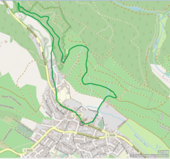 Diese kleine Runde startet in Richtung Talstraße weiter den Schlangenpfad entlang. Am Schild geht es scharf rechts hinauf in Richtung Burg. Allerdings wird heute nach wenigen Metern der Weg wieder verlassen um kurzzeitig dem Weg 2 Richtung Schützenhaus zu folgen. Auch dieser Weg wird kurz danach wieder geradeaus verlassen. Über ein paar weitere Waldwege geht es dann zu den höchsten Stellen der Runde auf einen relativ langen, geraden Waldweg. Diesem wird dann weiter bis zum Ende des Waldes gefolgt und dann geht es bergab auf einem Stück Rheinsteig. An der Ruhe-Ecke geht es dann nach rechts wieder auf die Kiedricher Weinberge. In Höhe des Weinprobierstand geht es dann rechts weg am Fuße des Gräfenbergs entlang. Am Ende des Weges geht es dann links den Bassenheimer Weg hinauf zur Oberstraße und dann zurück zum Startpunkt.